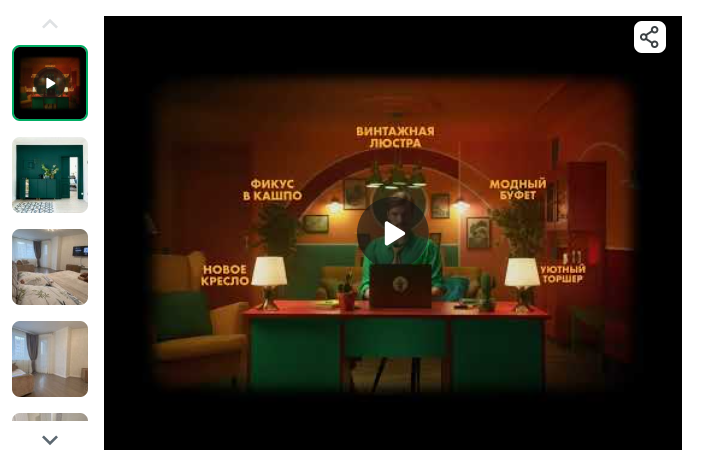 В объявлении видео отображается на первом месте в галерее. При первом клике на видео открывается галерея фото и видеоматериалов выставляемого предложения. Чтобы произвести видео, нужно нажать на него еще раз. После просмотра видеоматериала пользователь продолжит листать фотогалерею.