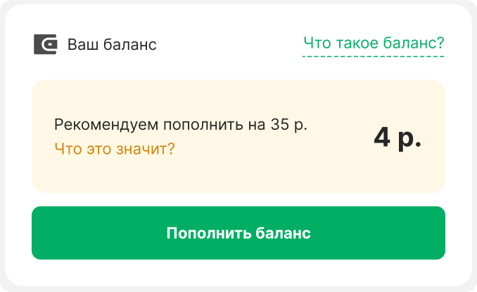 - получать уведомления о необходимости пополнить баланс: