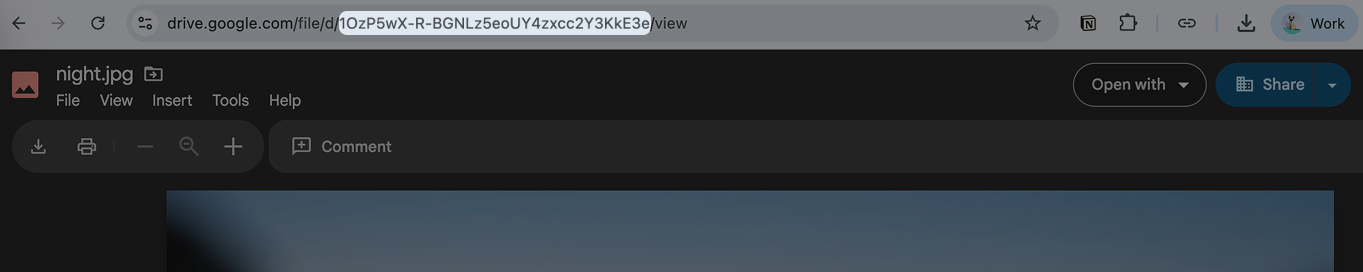 2. Вставить в адресную строку браузера полученную ссылку и скопировать айди изображения: